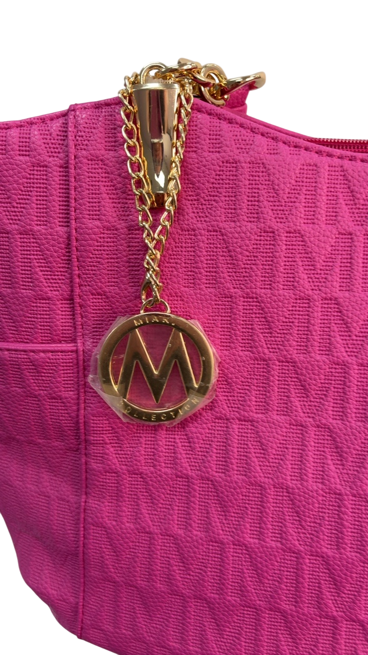 This vibrant pink tote from Mia K. offers a chic and practical accessory for daily use. Crafted from textured fabric, it features a spacious interior with a front zipper pocket for easy access to essentials. Gold-tone chain straps add a touch of luxury, making it perfect for both casual outings and stylish errands. The subtle logo pattern enhances its modern appeal, ensuring you stand out effortlessly.