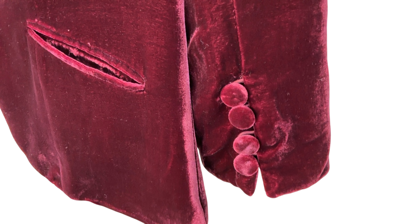 This luxurious velvet blazer from LOFT features a rich burgundy hue that adds a touch of elegance to any wardrobe. The tailored design includes a notched lapel and a single button closure, making it perfect for both formal and smart-casual occasions. Velvet fabric offers a soft, plush feel that elevates everyday style. The blazer’s structured shoulders and fitted silhouette create a flattering shape. Small details like the buttoned cuffs add subtle sophistication. An excellent addition for elevating your fall and winter ensembles.