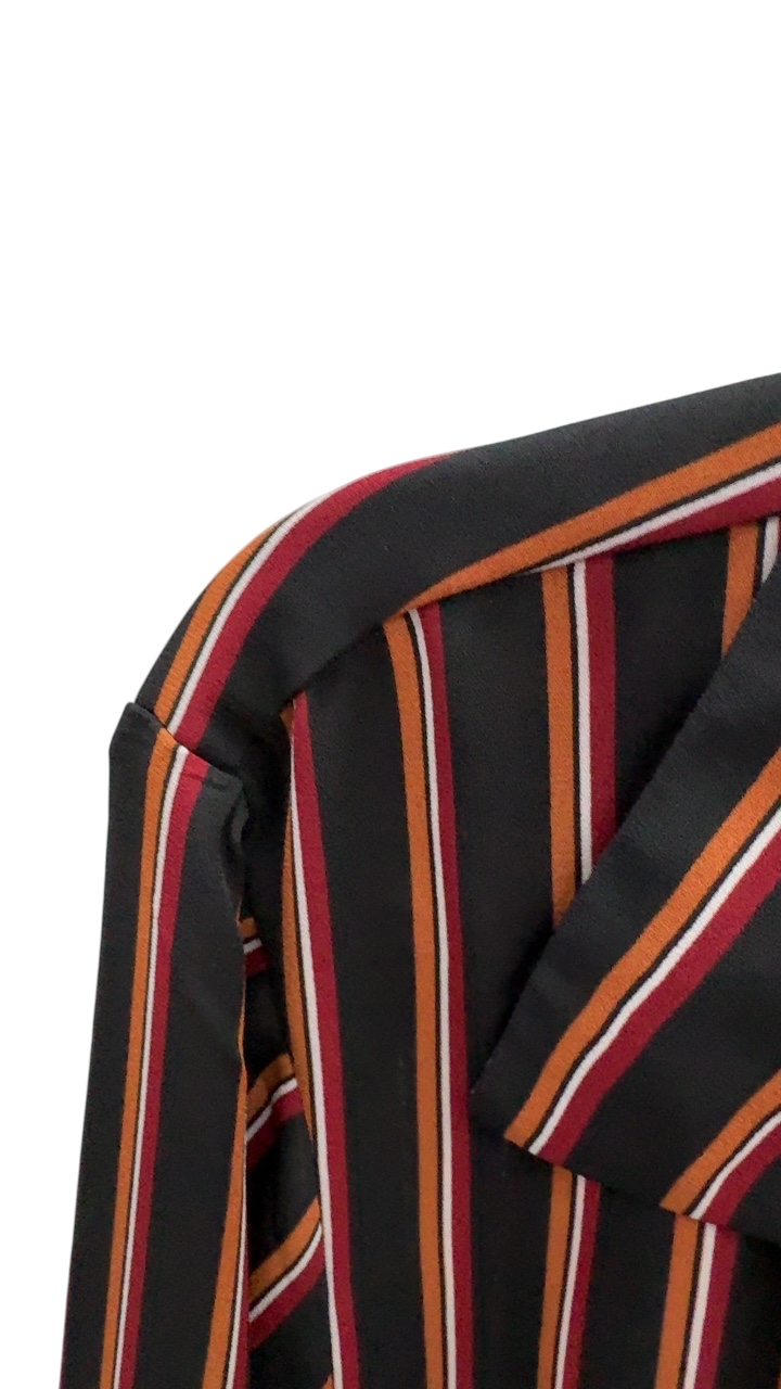 This stylish blouse features a bold striped pattern that adds a touch of sophistication to any wardrobe. Its silky fabric offers a smooth feel, making it perfect for both casual and formal settings. The classic collar and button-down front lend a timeless appeal. Play with accessories to elevate your look. Ideal for office wear or a night out, this blouse combines comfort with chic design.