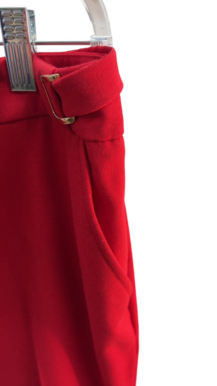 Sophisticated red trousers crafted from a wool blend, these pants add a bold yet refined touch to any wardrobe. Featuring a tailored fit with subtle detailing like belt loops and classic pockets, they are perfect for professional or smart-casual looks. The clean lines and vibrant color make them a versatile choice for standout style.