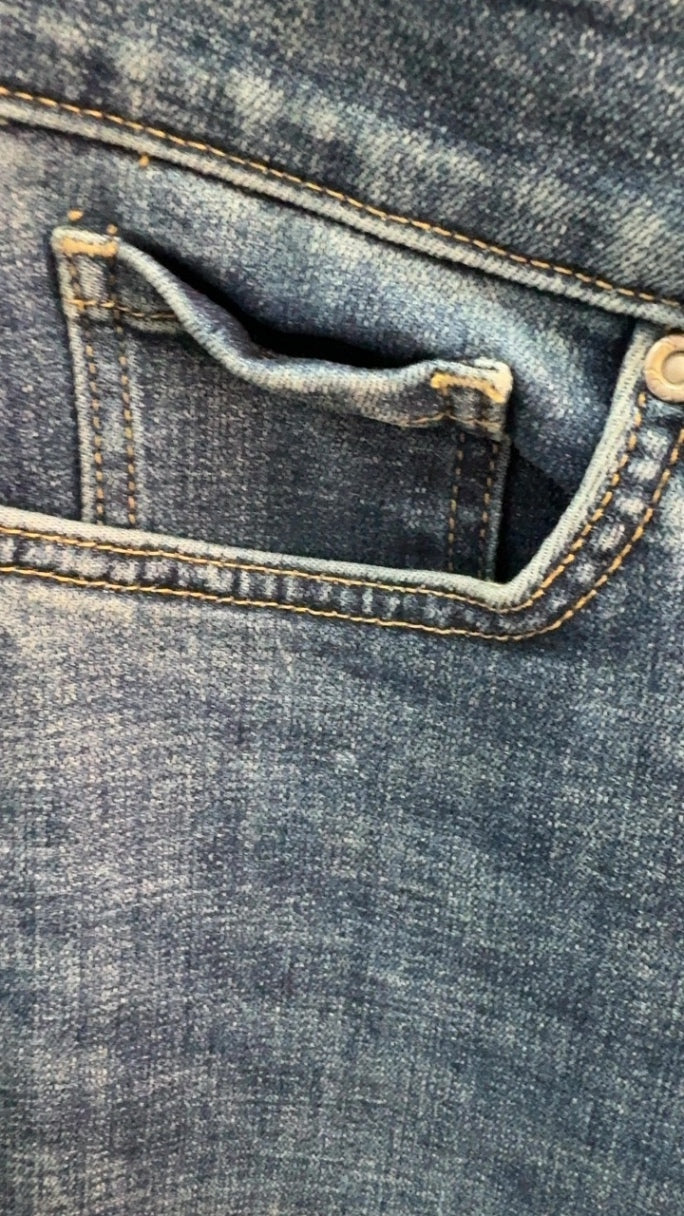 Classic blue denim jeans with a relaxed fit and subtle fading. They feature traditional five-pocket styling and a zip fly with a button closure. Perfect for casual outfits, these jeans combine comfort with timeless style. Versatile enough to dress up or down, they’re a staple piece for everyday wear.