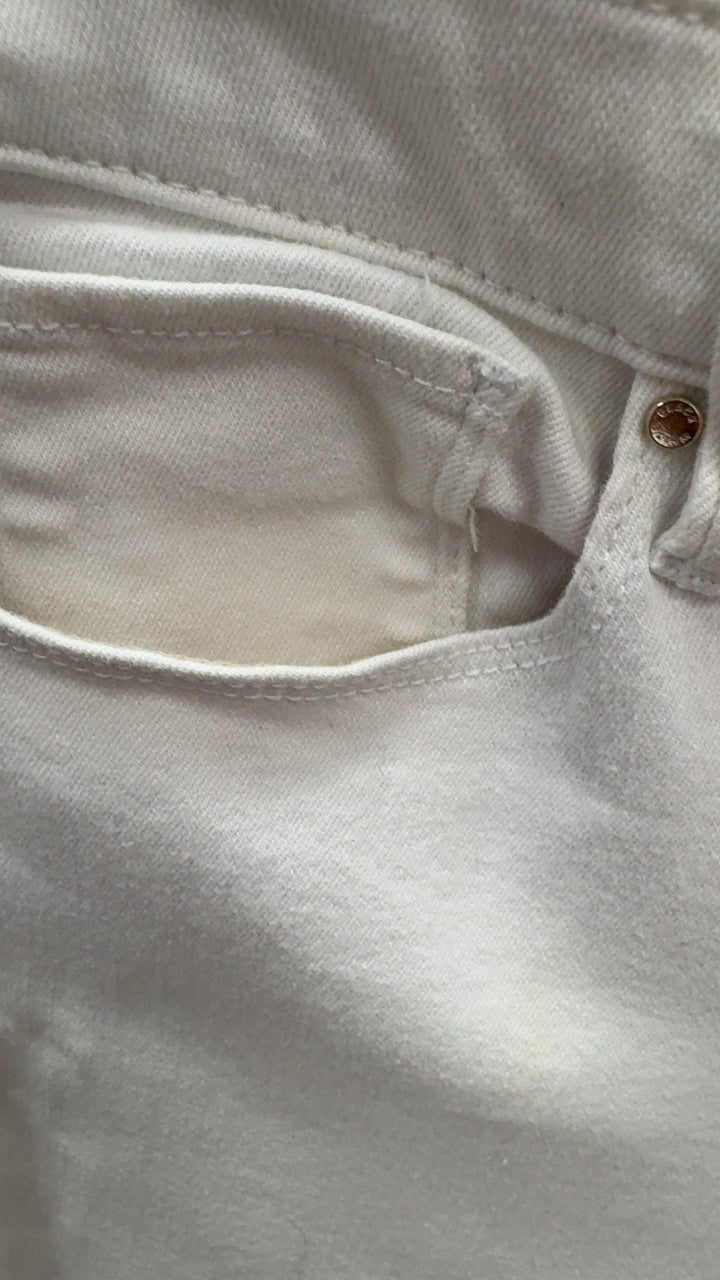 These creamy white denim pants offer a classic and versatile silhouette, perfect for casual and smart-casual looks. They feature a slim fit design with a standard waistband, belt loops, and traditional five-pocket styling. The neutral tone makes them easy to pair with various tops and footwear. Crafted from durable denim, these pants combine comfort with timeless style.