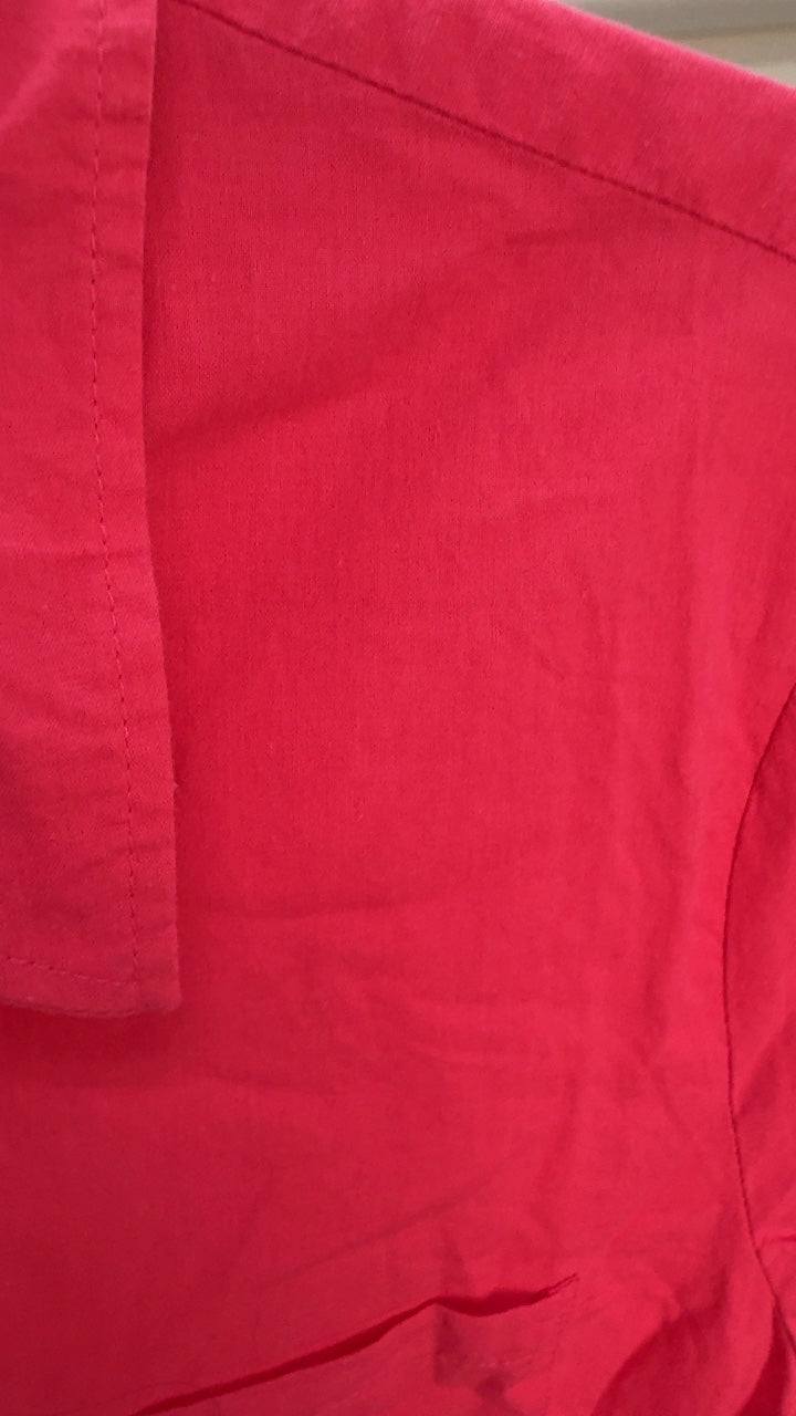 A classic pink button-up shirt from Gap, crafted from lightweight cotton. Perfect for both casual and office wear, its tailored fit adds a polished touch to any outfit. Slightly wrinkled for a relaxed vibe, it offers versatile styling options.