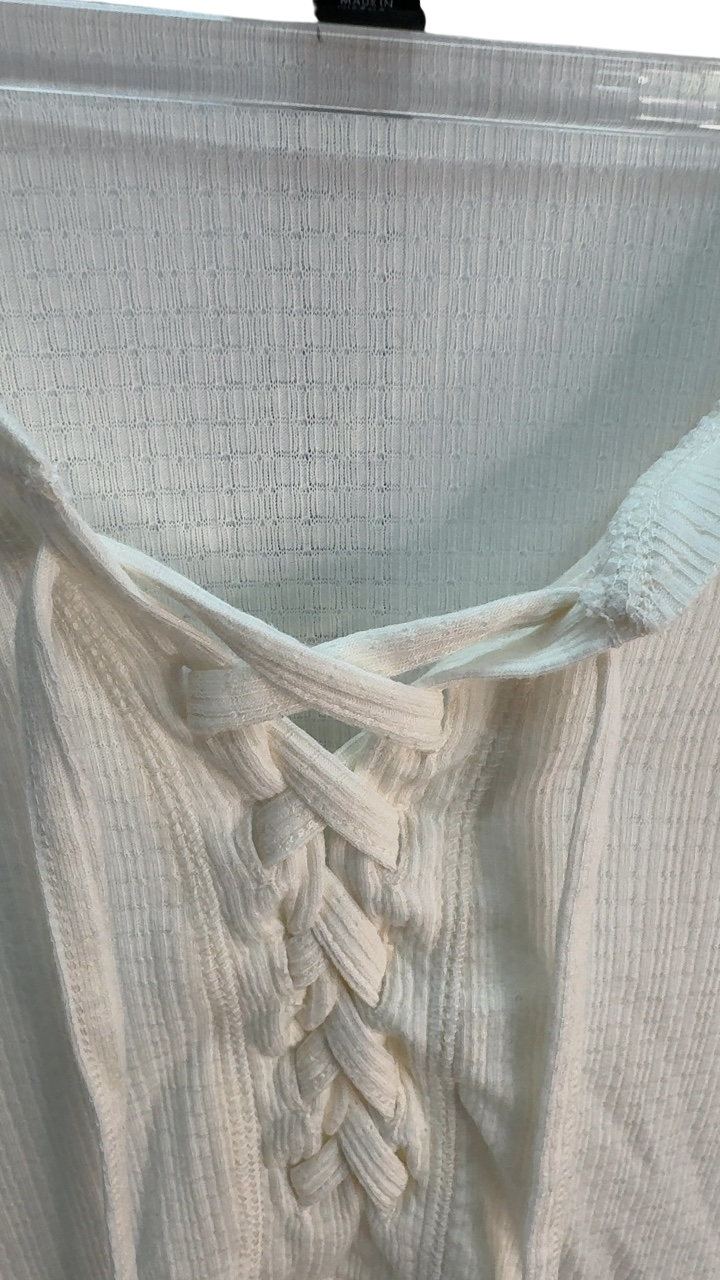 This TORRID top offers a relaxed and versatile look with its cream hue and textured fabric. Featuring a subtle lace-up neckline, it combines casual comfort with a trendy edge. Perfect for layering or wearing alone, it's an easy choice to elevate your everyday style with minimal effort.
