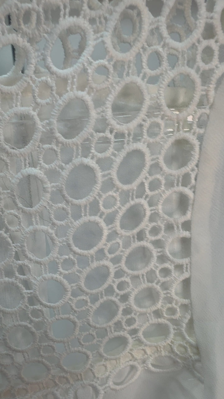 This elegant white top features a delicate crochet detail at the yoke, exuding femininity and charm. The relaxed, flowing fit is perfect for casual outings or a breezy summer look. Play with accessories to elevate its simple yet sophisticated design. Its breathable fabric makes it a versatile choice for warm days. Pair it with jeans or skirts for effortless style.