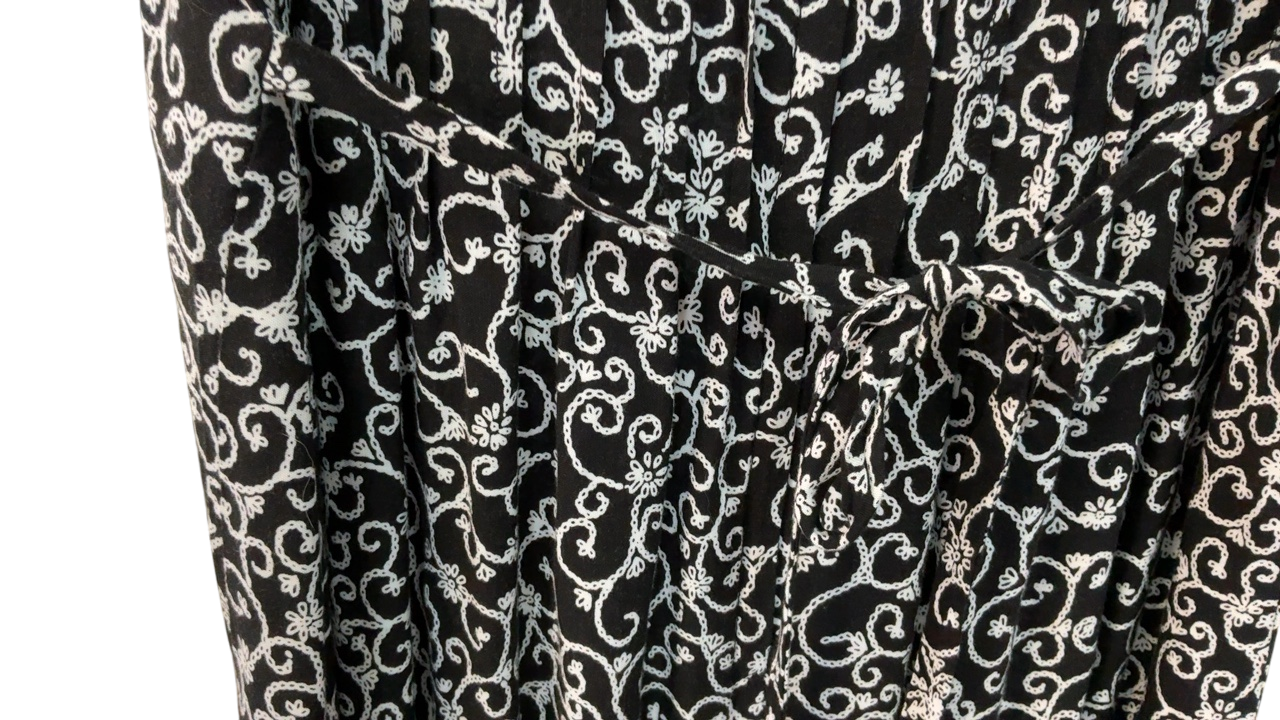 This elegant maxi dress from MSK features intricate white swirl patterns on a sleek black background. Its comfortable, flowy silhouette makes it perfect for formal events or summer evenings. The dress is designed with a round neckline and short sleeves, adding to its chic appeal. Lightweight and breathable, it offers both style and comfort. A versatile choice that pairs well with heels and statement accessories.