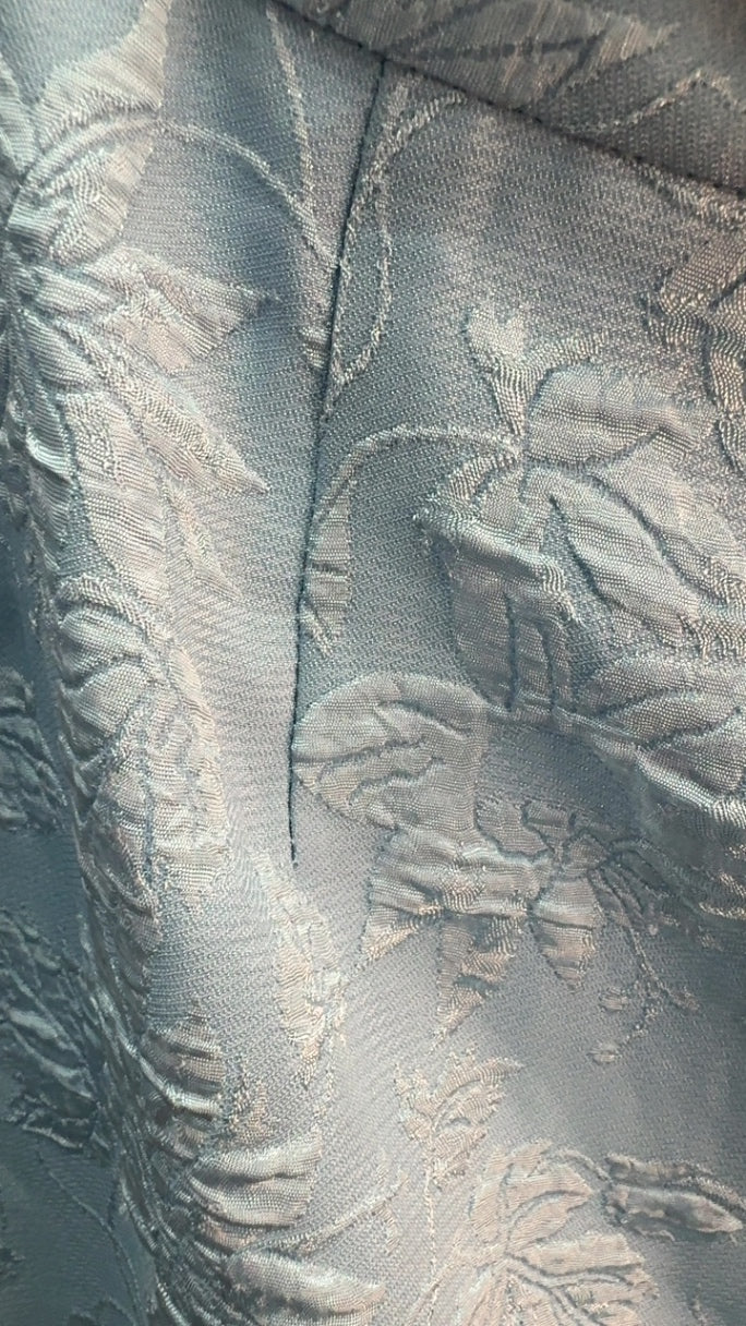 A sophisticated light blue skirt crafted from textured jacquard fabric featuring an elegant floral pattern. Perfect for both formal occasions and stylish office wear, its timeless design adds a touch of grace to any wardrobe. The subtle sheen and intricate detailing make it a versatile piece that pairs beautifully with a variety of tops and accessories.