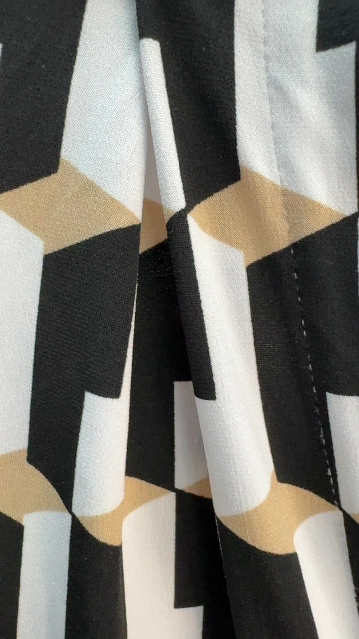 This chic sleeveless top by Calvin Klein features an eye-catching geometric pattern in neutral tones. Made from lightweight polyester, it offers a sleek silhouette perfect for elevating both casual and professional outfits. Its stylish print and modern cut make it a versatile addition to any wardrobe.