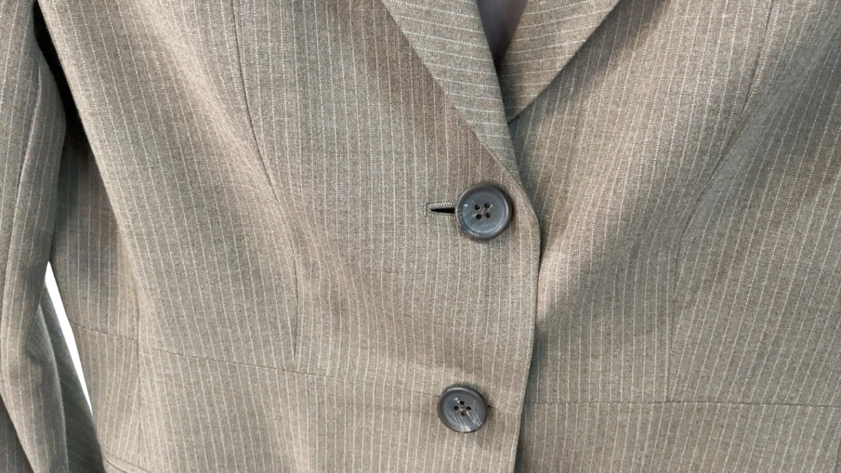 This tailored blazer from Banana Republic features a classic fit with a sophisticated gray hue. Crafted from a wool blend, it offers both comfort and durability, perfect for professional or smart-casual looks. The blazer's sleek design includes notch lapels and a single-breasted closure, making it a versatile addition to any wardrobe. Its subtle pinstripe pattern elevates its timeless appeal, suitable for office wear or refined outings.