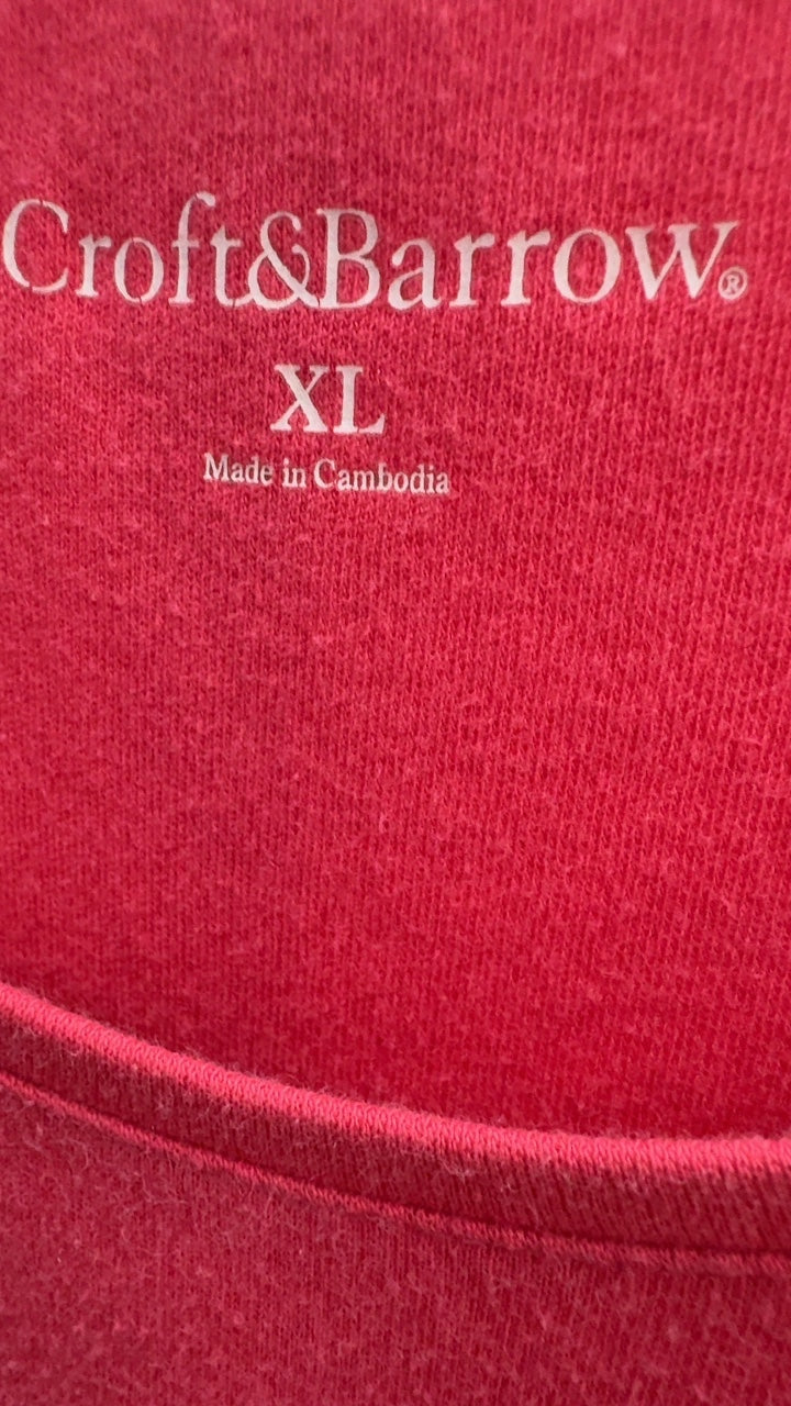 This vibrant red top by CraftsBarrow offers a comfortable fit with its classic crew neckline. Crafted from a soft fabric, it features subtle stitching details along the shoulders. Ideal for casual outings or layered under a jacket. The shirt's versatile color and timeless design make it a wardrobe essential. Perfect for pairing with jeans or skirts for a stylish, effortless look.