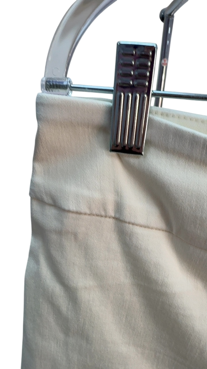 A pair of classic cream-colored trousers crafted from a comfortable and stretchy fabric. These versatile bottoms feature a simple design, perfect for both casual and semi-formal occasions. With a relaxed fit, they offer effortless style and all-day comfort.