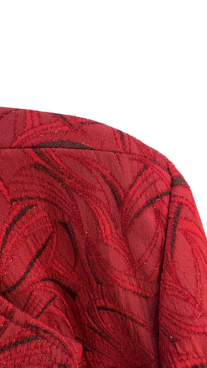 A sophisticated red blazer featuring a textured jacquard pattern. Crafted with a classic lapel collar, it's perfect for elevating both business and casual looks. The tailored fit adds a polished touch to your wardrobe. Ideal for making a stylish statement at any formal or semi-formal event.