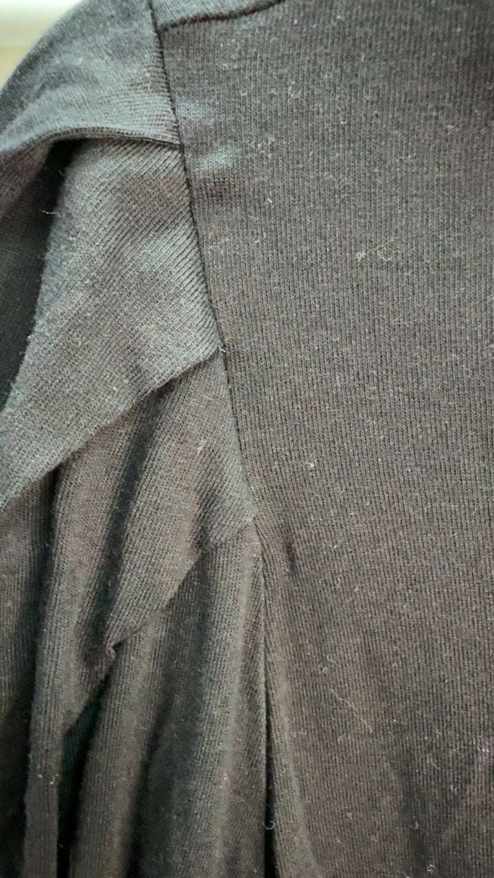 This black long-sleeve top from Crown & Ivy offers a stylish blend of comfort and elegance. Featuring subtle puffed shoulders and gathered details on the sleeves, it's a versatile piece that adds a touch of sophistication to casual and semi-formal looks. Made from soft cotton, it provides a cozy feel while maintaining a chic appearance.