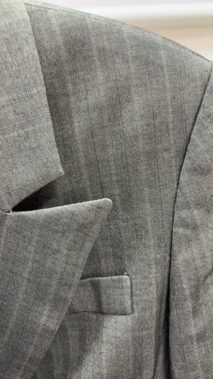 This tailored suit jacket by Antonio Milani features a classic pinstripe pattern in sophisticated gray tones. With structured shoulders and a single-button closure, it offers a polished look suited for professional settings. Perfect for pairing with matching trousers or a sleek skirt for a versatile formal outfit. Crafted from a wool blend, it ensures comfort and durability while maintaining a sharp silhouette.