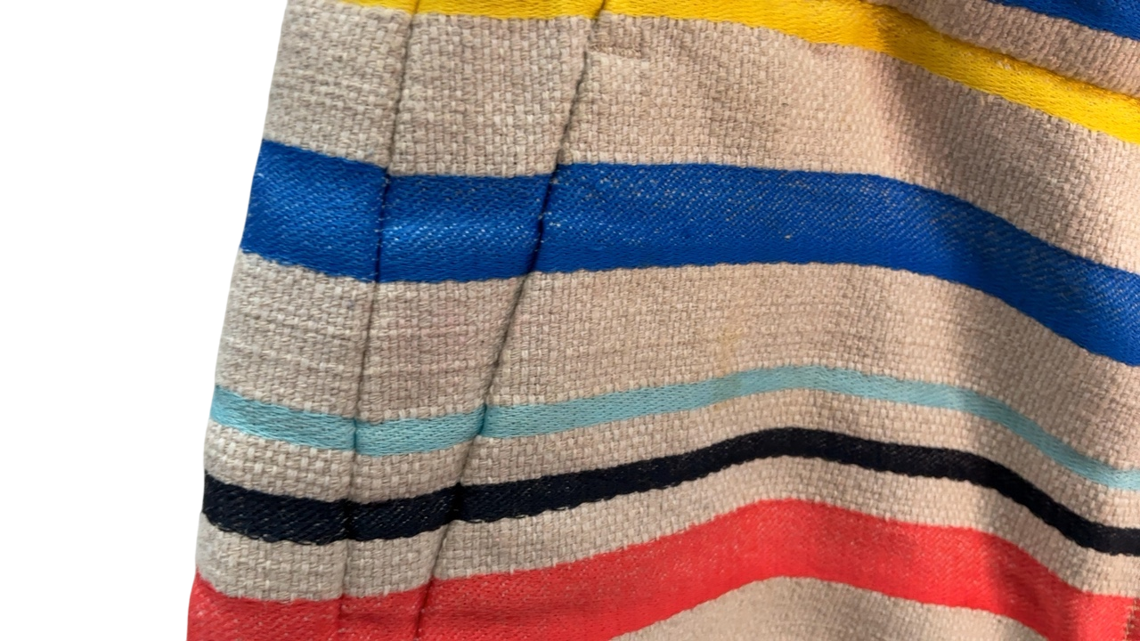 These playful shorts from J.Crew feature bold horizontal stripes in a vibrant mix of colors. They are crafted from a comfortable, lightweight fabric perfect for warm days. The tailored fit and colorful pattern make them a great choice for casual outings or a beach day. Easy to style with simple tops for a cheerful summer look.