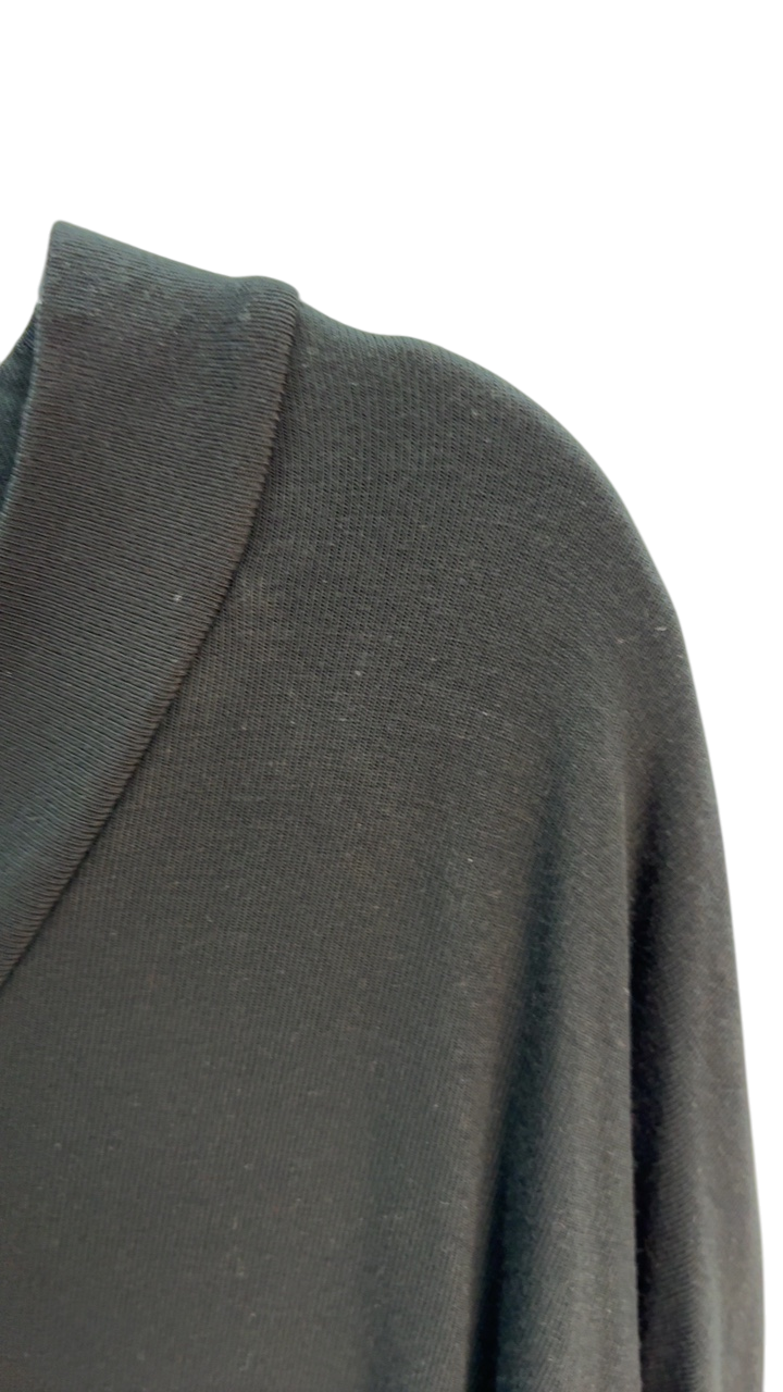 A versatile black long-sleeve top featuring a V-neckline. This piece offers a relaxed fit, perfect for layering or wearing on its own. Made from a soft and comfortable fabric, it effortlessly elevates your everyday wardrobe with a touch of understated elegance.