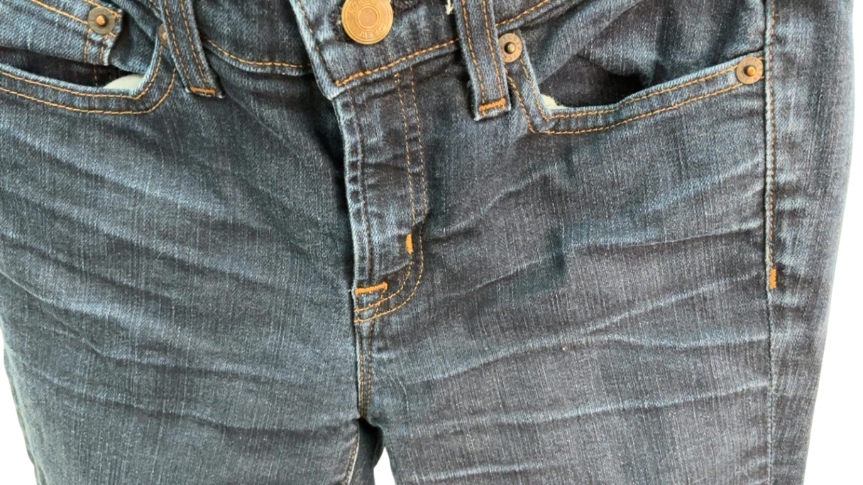 These classic J. Crew dark blue denim jeans feature a slim fit and a versatile style perfect for everyday wear. Crafted from durable denim, they offer comfort and style in one package. The subtle fading details add a touch of vintage charm, making them a great choice for casual outings.