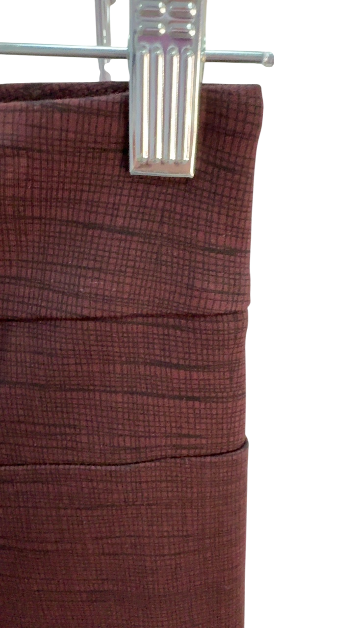 These tailored maroon trousers feature a sleek, slim fit with a subtle textured pattern. Crafted from a wool blend, they offer both comfort and sophistication. Perfect for office wear or formal occasions, their classic design is elevated by precise seam detailing. The high waist and tapered legs add a modern touch to this timeless piece.