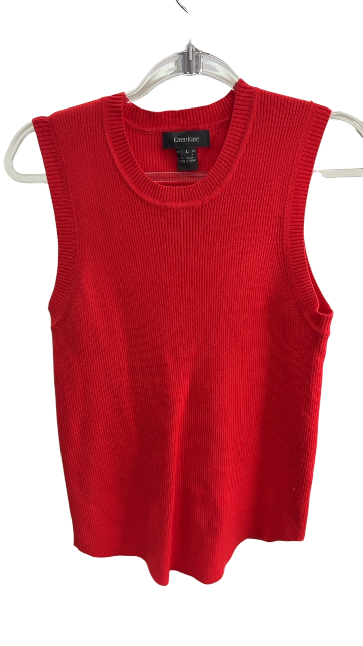 A bold and vibrant sleeveless knit top from Karen Kane. Crafted from soft, textured fabric, it features a classic crew neckline and a slim fit. Perfect for layering or wearing solo for a pop of color. Its sleek design makes it versatile for both casual and dressier occasions.